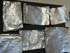 En lien avec Halloween, les 4e ont travaillé sur les forces occultes et ont fabriqué des tablettes de défixion pour maudire les voleurs en tout genre. Les noms de ces indélicats sont désormais cloués (c’est le sens de « défixion ») ou plus exactement punaisés sur le mur de notre salle de classe. (cf photo)